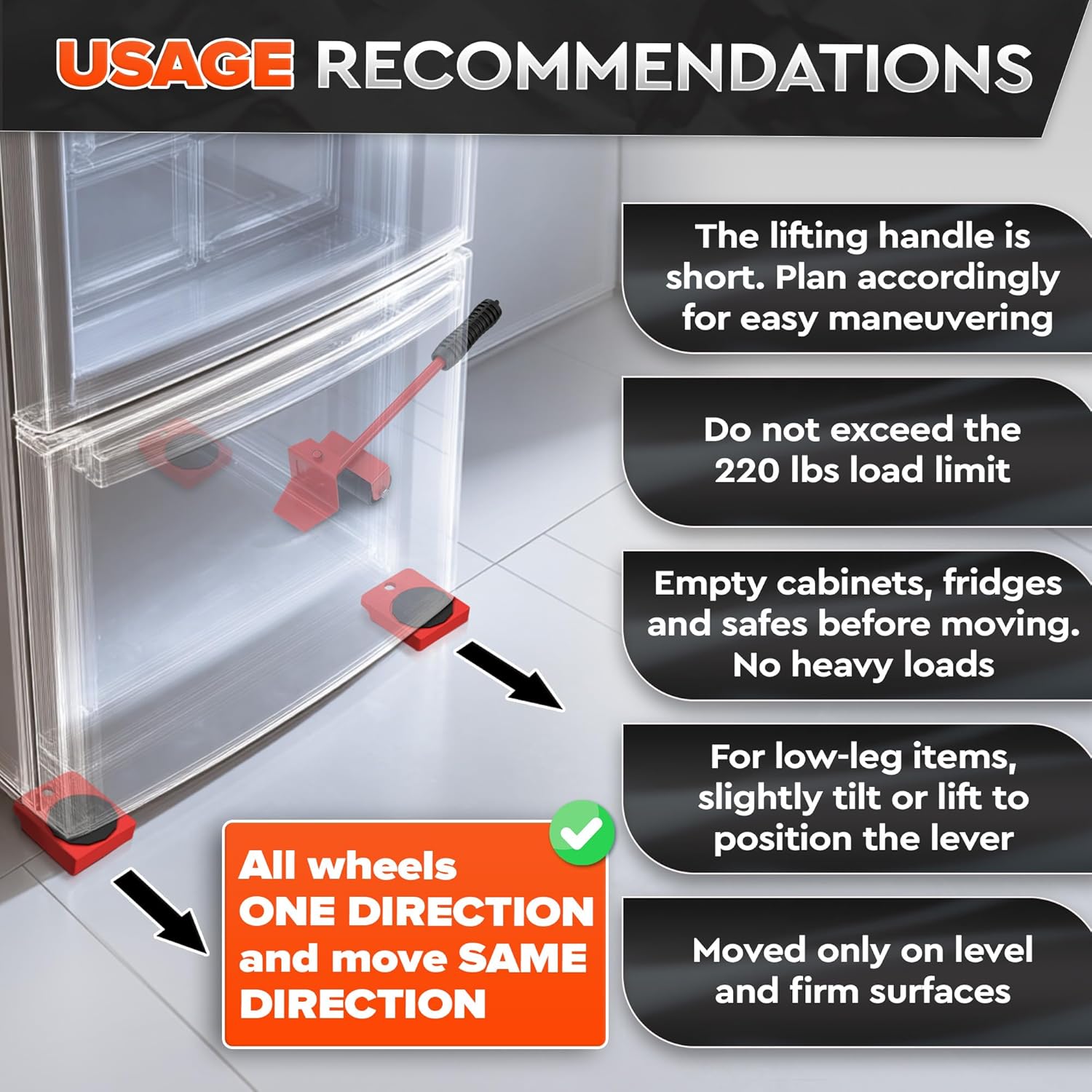 Smart Moving: Lift Furniture with One Hand. Easy assembly, no tools required. Lifting, Position, Slide, Adjust, and level your appliances and furniture more easily.